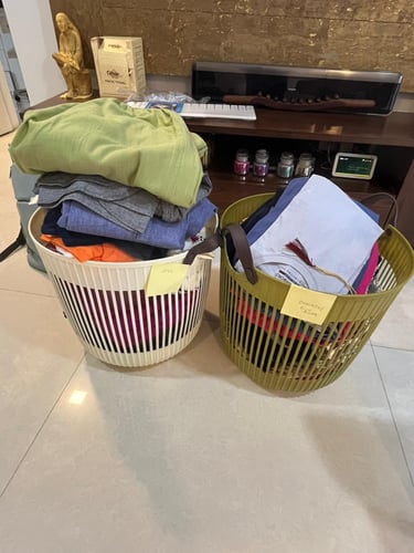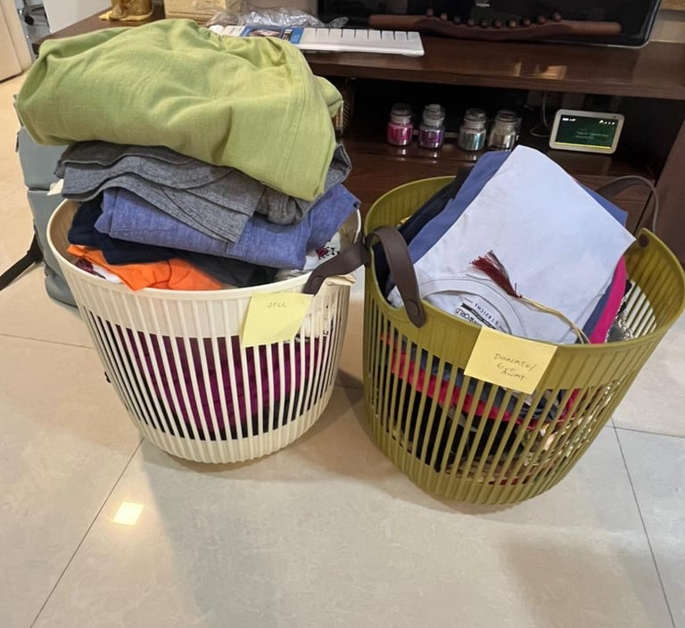 Even though she had tried decluttering on her own, the clutter kept returning—especially with frequent size changes.